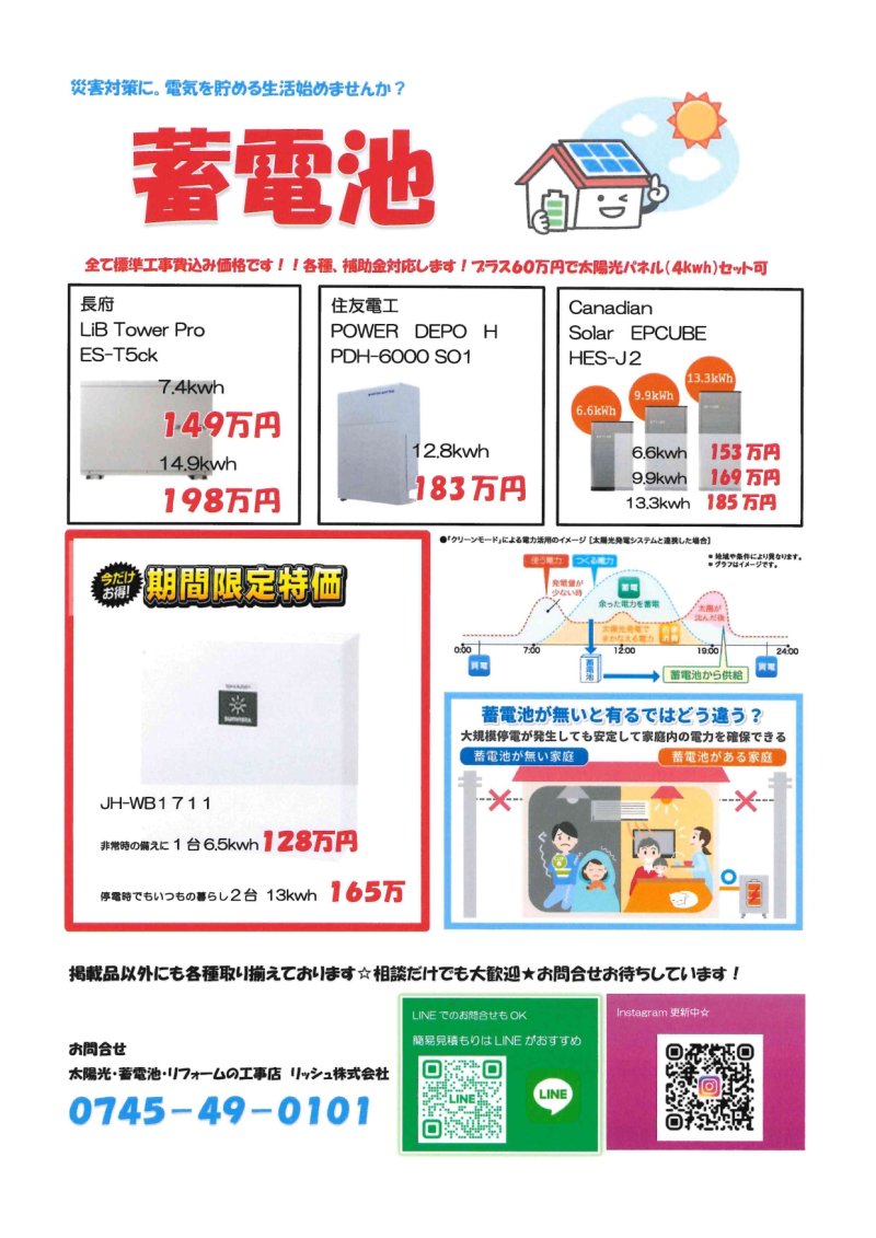✔ 停電時も電気が使える安心のバックアップ機能
